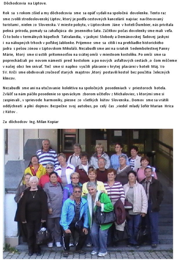 Niektorí členovia sa zúčastnili tiež pozvania na spoločné posedenie dôchodcov všetkých obcí, ktoré patria do združenia Enviropark Pomoravie,n.o.. Bolo tu zastúpených 8 obcí. Jednalo sa o vianočné posedenie. Toto posedenie sa konalo v kultúrnom dome v Jakubove. Bol tu vynikajúci program. Hrala hudobná skupina zo Zohora, s ktorou sme si spoločne zaspievali a tí, ktorým sa chcelo si aj zatancovali. Stretli sa tu dôchodcovia so známymi, ktorých už aj niekoľko rokov nevideli. Vymenili sme si skúsenosti, podebatovali. Niečo sme sa aj naučili. Napr. Ozdoby na vianočný stôl, adventné venčeky, atď. Urobili sme si aj malú súťaž v pečení vianočných koláčikov. Z každej obce napiekli dôchodkyne niekoľko druhov koláčikov a na tomto posedení starostovia z jednotlivých zúčastnených obcí mali vybrať tie najlepšie a najkrajšie. Ale – nakoľko všetky boli aj dobré aj pekné, starostovia mali veľmi ťažkú úlohu a preto sa rozhodli, že si každý vylosuje svoje miesto. Zdá sa mi, že to bolo spravodlivé. Zástupcovia z každej jednotlivej obce dostali nejakú cenu. Aspoň cenu útechy, ktorou bola spoločenská hra do klubu. Medzi týmito cenami boli tri ceny bohatšie. Tiež do klubu. Bohužiaľ, nám sa nepodarilo. Ale máme spoločenskú hru na dlhé zimné večery. Len škoda, že tieto hra nemáme kde hrať. Totiž nemáme ešte priestory, kde by sme sa udomácnili. Bol to veľmi pekný večer s príjemným program a zanechal v nás príjemné zážitky.
